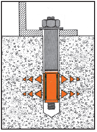 When tightening the bolt the two opposing cones force the expansion sleeve to break at a pre-calibrated point and the full length is then forced against the side wall.