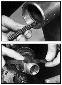 The pitch of the damaged thread is determined by placing the thread file onto it. Then the tool is used as a scraper file.