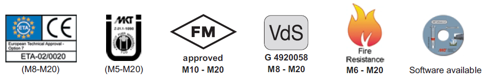 European approved Drop-in Anchor E: Deformable expansion cone adjusts to strength of concrete as well as to size of hole within the variation range of a drill bit from new to worn. The anchor assures easy and safe fastening. The shoulder of the setting tool contacts the anchor in any case. The marking setting tool leaves four significant marks on each anchor as proof of correct expansion. Spacing and edge distance are much more favourable than for most Drop-in Anchors on the market.