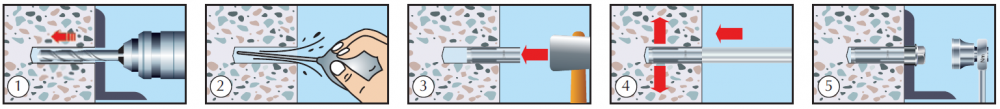 4. Install anchor using proper setting tool. Setting tool to be driven into anchor until setting tool's shoulder meets top of anchor.