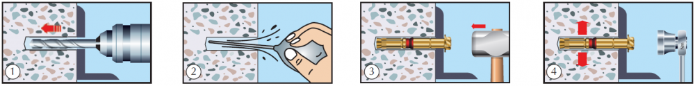3. Using a hammer, tap the anchor through the fixture into the hole until the bolt head is firmly seated against the fixture.