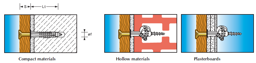 - Wallplug with flange, made of special plastic. In solid materials the plug spreads; in hollow materials or cavity materials the plug forms a knot and is suitable for almost all applications.